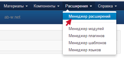 2. Открываем в админке Расширения → Менеджер расширений: