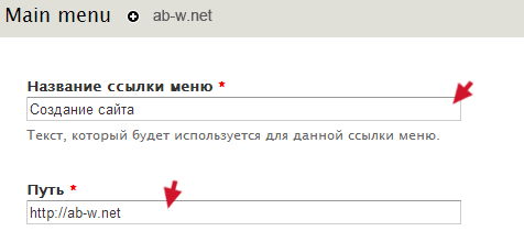 Вес определяет порядок размещения — чем больше вес, тем выше приоритет. Родительская ссылка определяет в каком именно блоке меню будет находится добавляемый пункт.