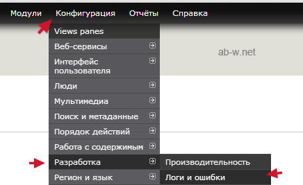 Приступим к настройкам разработки, переходим в Логи и ошибки: