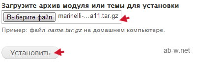 После этого выбираем загруженный ранее архив и продолжаем установку: