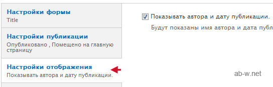 Здесь мы определяем, показывать автора публикации или нет: