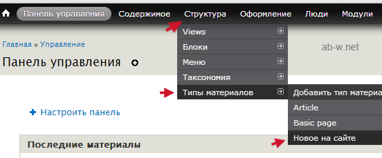Типы материалов Drupal
