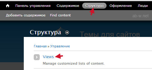 Открыть и управлять Drupal Views можно здесь: